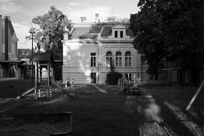 Danach erzählt mir Snježana bei einem Kaffee, auf den wir wegen eines Wasserrohrbruchs in der Straße ziemlich lange warten müssen, dass es im Industrieviertel Osijeks auf der anderen Seite des Bahnhofs ein Haus namens Dvorac Mačkamama (Villa Katzenmama) gibt, das eine lange Geschichte hat und das ich leicht mit der Straßenbahn erreichen könnte, wenn ich bei gleichnamiger Station aussteige. Der Name kommt von Paulina Hermanns liebevollem Spitznamen, die vor der Vergesellschaftung nach dem zweiten Weltkrieg als Besitzerin dort viele Katzen gehalten hat. Für den nächsten Tag hatte ich zwar geplant die Künstler in der Tvrđa zu fotografieren, aber sollte dann noch Zeit bleiben wäre eine Besuch bei Mačkamamas Erbe eine Möglichkeit. Eine neue Umgebung ist immer etwas Gutes.